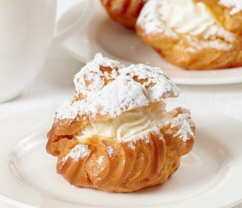 После того как эклеры остынут, приступайте к приготовлению начинки. Для этого творог тщательно перемешайте с сахаром, добавьте взбитые сливки и немного ванилина. Все ингредиенты аккуратно соедините и взбейте до получения пышной массы. Затем наполняйте каждый эклер получившимся кремом с помощью кондитерского мешка.