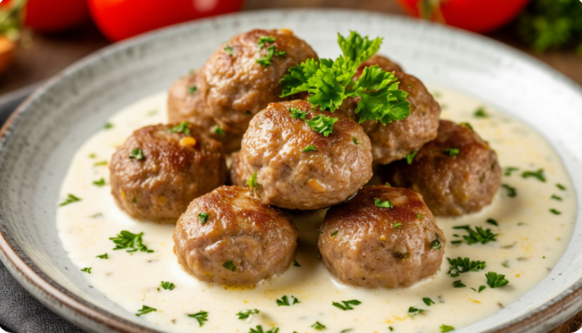 - Сметана: Имеет двойную функцию — в фарше она делает тефтели нежными, а сверху предотвращает пересыхание.