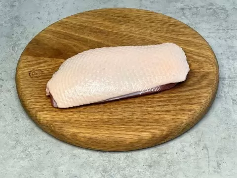 - Подготовка продукта: Утиная грудка должна быть комнатной температуры. Перед началом процесса её необходимо хорошо промыть и обсушить с помощью бумажных полотенец. Кроме того, стоит сделать тонкие надрезы на коже, что позволит жиру вытапливаться, придавая корочку.