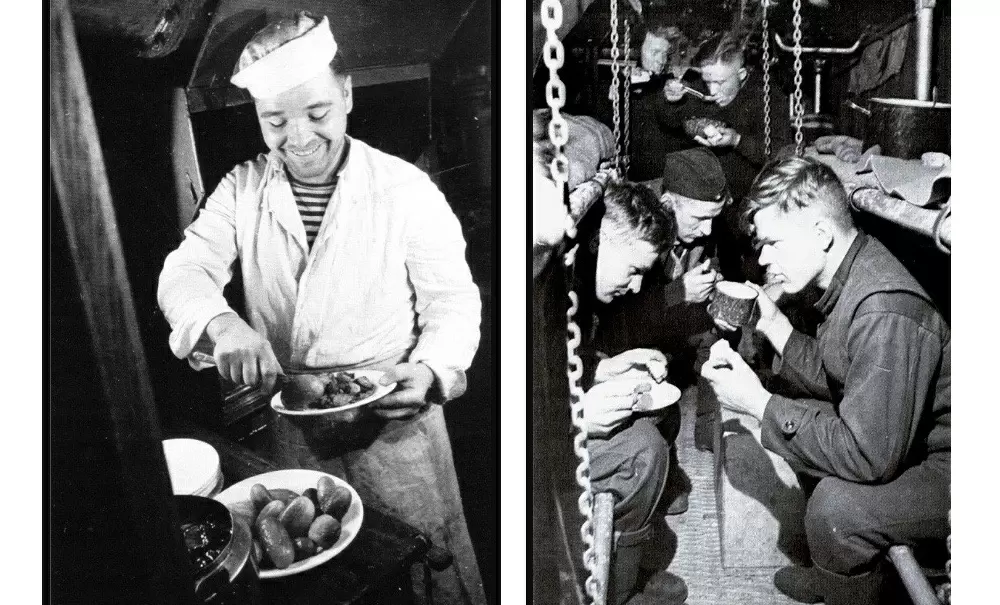 Питание на советских подводных лодках, несмотря на военные условия, было вполне приличным. Основное меню сформировалось под воздействием дефицита некоторых сельскохозяйственных продуктов, но консервированные паштеты, мясные и овощные консервы обеспечивали экипаж необходимыми питательными веществами. Помогли и поставки по ленд-лизу, которые вносили разнообразие в рацион моряков.
