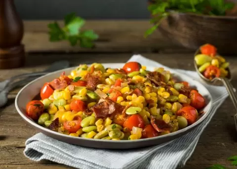 Суккоташ — это блюдо с богатой историей, и его название происходит от наррагансеттского слова ms?ckquatash, что в переводе означает «варёное зерно кукурузы». Это не просто простой гарнир, а настоящая находка, включающая в себя кукурузу, разнообразные бобовые, овощи и, иногда, бекон.
