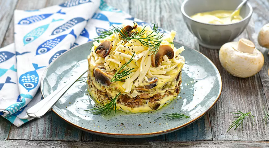 Приготовление этого салата занимает всего 35 минут, а получается он на 8 порций. Каждая порция насыщена 332,5 калориями, что делает его идеальным даже для диетического питания. Содержание БЖУ: 12,6 г белков, 28,1 г жиров и 6,7 г углеводов, что делает его сытным и в то же время достаточно легким вариантом для ужина.