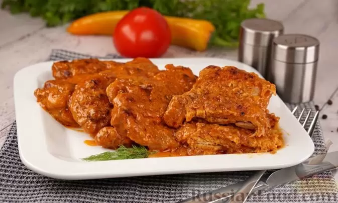 - Отбивные в сливочно-томатном соусе: Куриное мясо проходит нежный процесс приготовления с добавлением сочных помидоров и сливок, создавая изысканный вкус.