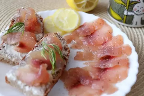 Филе язя нарезается острым ножом. Из двух рыбин получится четыре аппетитных кусочка. Затем каждый кусок обрабатывается полученной соляной смесью и помещается в контейнер. Рыба должна провести ночь в холодильнике, за это время ее рекомендуется перемещать, чтобы каждая часть пропиталась равномерно.