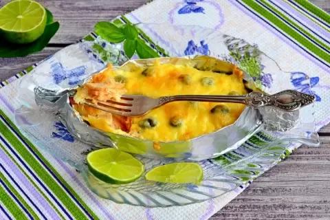 На следующем этапе натрите сыр на крупной терке и посыпьте им рыбу обильно. Поместите подготовленные лодочки в разогретую до 200°C духовку на 20 минут, затем включите гриль на 3 минуты, чтобы сыр подрумянился. Важно следить за рыбой, чтобы она не пригорела.