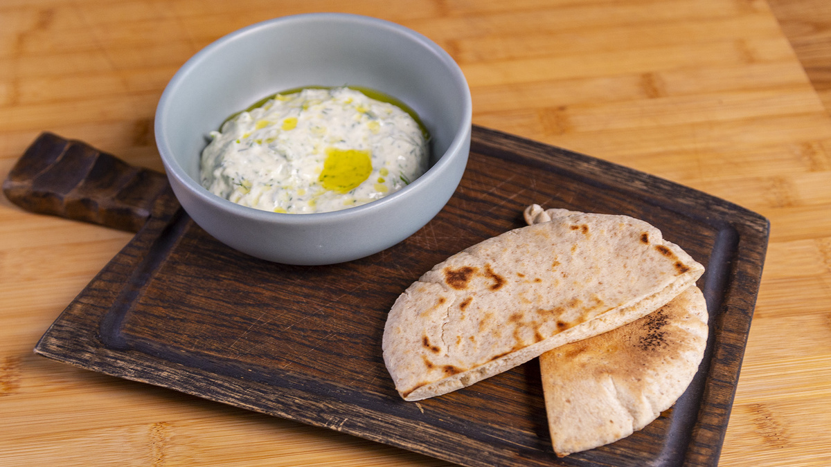 Цацики подаются с поджаренной питой, которую можно быстро приготовить на сухой сковороде или в тостере. Этот соус отлично дополняет мясные и овощные блюда, а также прекрасно подходит для легкого перекуса. Погрузитесь в атмосферу Греции и наслаждайтесь каждым вкусом!