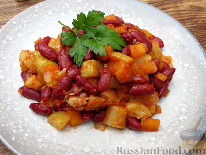 Также популярным станет блюдо из фасоли с кабачками в томатном соусе. Этот безмясной вариант подойдёт всем поклонникам овощных рецептов. Томатный сок объединяет ингредиенты, придавая блюду яркий цвет и замечательный вкус.
