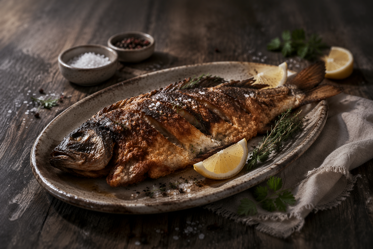 - Тщательная подготовка: Делайте надрезы на коже, чтобы избавиться от мелких костей и добиться хрустящей корочки.
