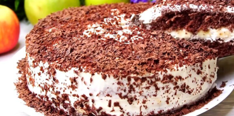 После того как торт остынет, аккуратно разрежьте его на два уровня. Подготовьте крем, смешав сметану с сахарной пудрой. На первый корж нанесите крем и выложите нарезанные бананы. Затем накройте вторым коржом и добавьте крем сверху, оформляя десерт по своему вкусу. Простой, но в то же время изысканный торт готов к подаче!