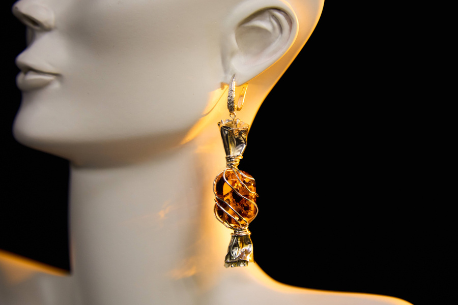 Эти удивительные янтарные конфеты изготовлены из прозрачного самоцвета, а визуальное сходство с леденцами ювелиры достигли с помощью специальной обработки камня — лузгования. Этот процесс проходит в автоклаве, где под высоким давлением и температурой происходят микровзрывы пузырьков воздуха. Результат — легкое свечение и карамельный блеск, придающие изделиям выразительность, сохраняя при этом натуральный цвет и форму янтаря.