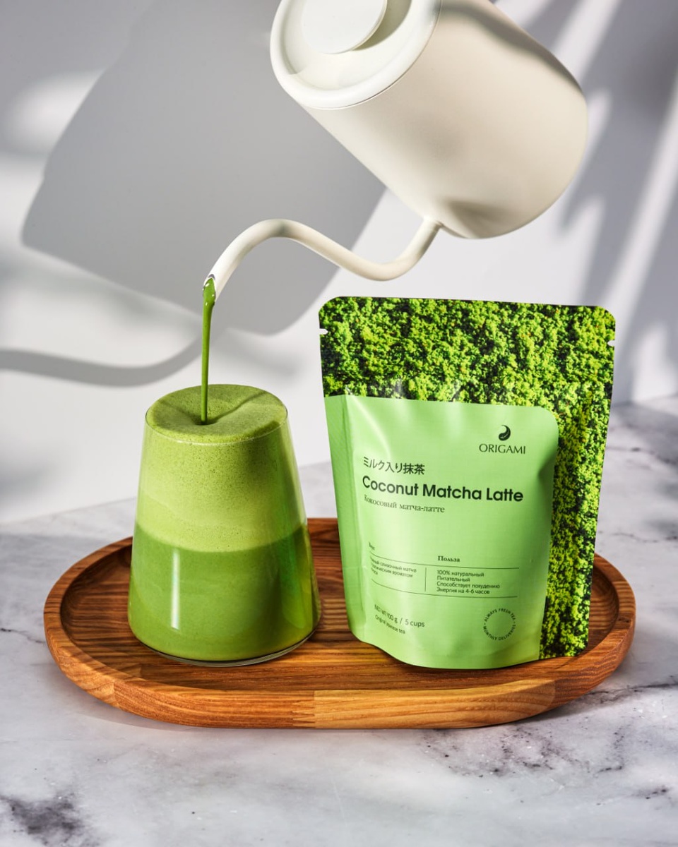 - Готовая смесь для матча-латте, включающая премиальный грейд матча, сухие кокосовые сливки и натуральный кокосовый сахар. Такая комбинация обеспечивает мягкий и сбалансированный вкус. Для приготовления просто залейте смесь водой, нагретой до 70-80 °C. В продаже скоро появится новая упаковка на 200 г для тех, кто уже успел влюбиться в этот напиток.