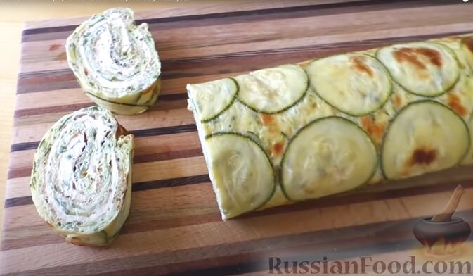 - Закусочный рулет из кабачков с сыром и творожной начинкой