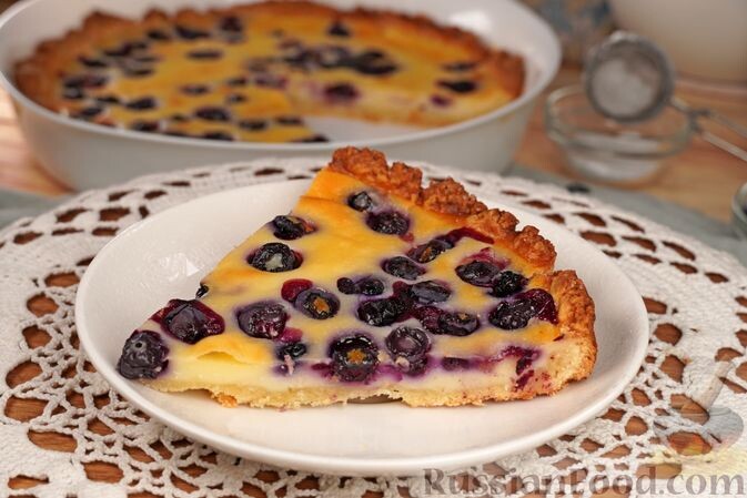 - Песочный пирог с голубикой — это лакомство сочетает в себе хрусткую основу и нежную начинку из сочных ягод.