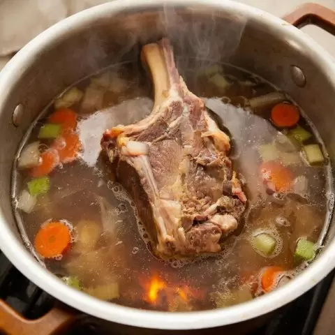 Для приготовления ароматного мясного бульона, первым делом требуется тщательно промыть мясо и отделить мякоть от костей. Далее, мякоть пропускается через мясорубку, а кости необходимо разрубить. Все это помещается в кастрюлю, заливается холодной водой и оставляется на 20-30 минут. После этого, не сливая воду, кастрюлю ставят на огонь для варки.