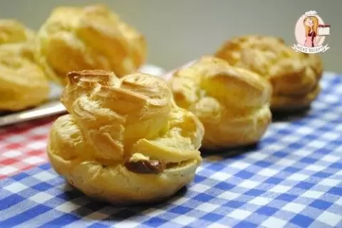 Профитроли выпекаются в разогретой до 220°С духовке в течение 10 минут, затем температуру следует уменьшить до 180°С и выпекать еще 25 минут. По завершении выпекания, профитроли можно начинить кремом из вареной сгущенки, просто надрезав их сбоку.