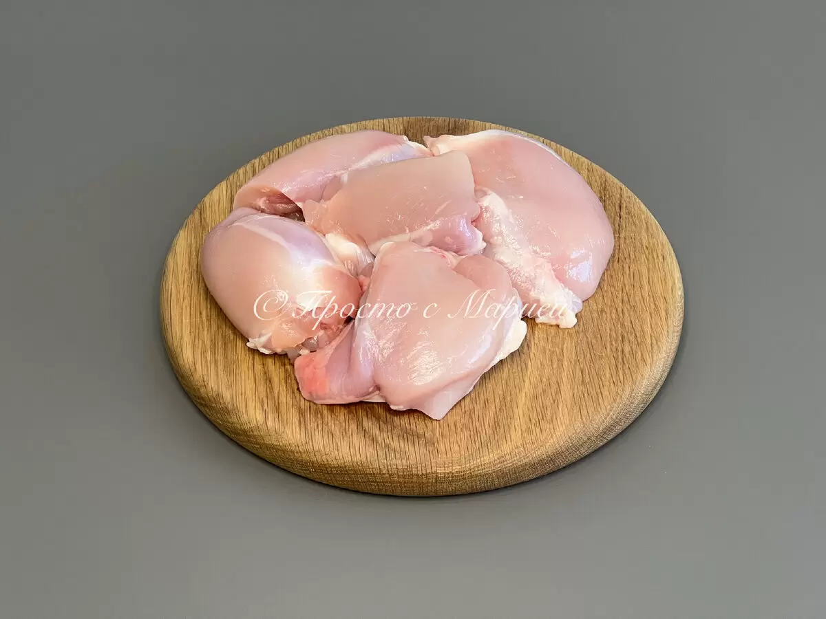 - Куриное филе (в данном случае бёдрышки) нарезать небольшими кусочками.