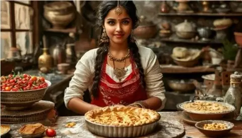 В далеком уголке Индии, среди живописных пейзажей и пестрых рынков, когда-то жила девушка по имени Шримати, известная своими уникальными кулинарными способностями. Её яблочная шарлотка стала не только любимым лакомством местных жителей, но и символом надежды и удачи.