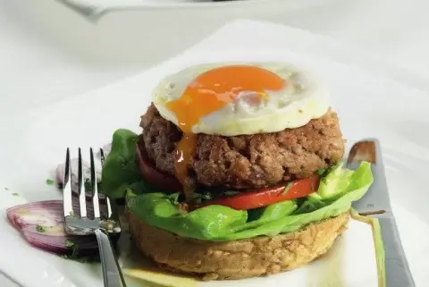 Для начала необходимо подготовить мясо. Пропустите его через мясорубку один раз, чтобы не сделать фарш слишком мелким. Далее приправьте его солью и перцем, добавьте мелко нарезанный красный лук и немного кетчупа. Все хорошо перемешайте и несколько раз “отбейте” фарш, швыряя его на стол. Это поможет насытить его воздухом и сделает котлету более вкусной. После этого обжарьте котлеты на сковороде или гриле до желаемой степени готовности.