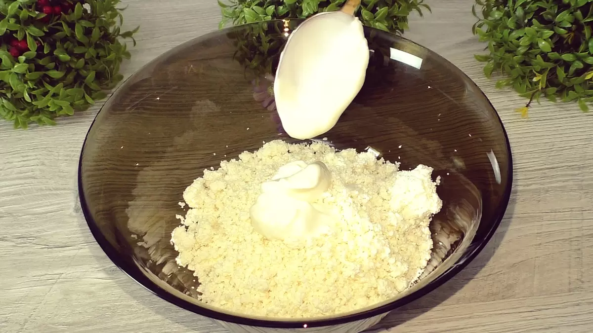 Все начинается с того, что в глубокой миске соединяются творог и сметана. Эти базовые компоненты создают мягкую текстуру теста. Необходимо сразу же добавить соль и сахар, что придаст тесту интересный вкус. Далее, в смесь вводятся яйца и растительное масло, смешивая все до однородного состояния. При желании, можно воспользоваться блендером для достижения более гладкой текстуры.