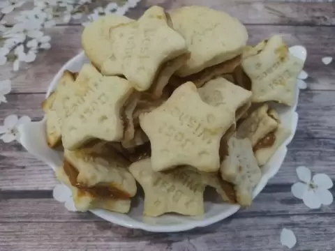 Готовое печенье необходимо остудить, а затем склеить между собой вареным сгущенным молоком. Хранить изделия стоит в герметичном контейнере, чтобы они долго оставались свежими и аппетитными.