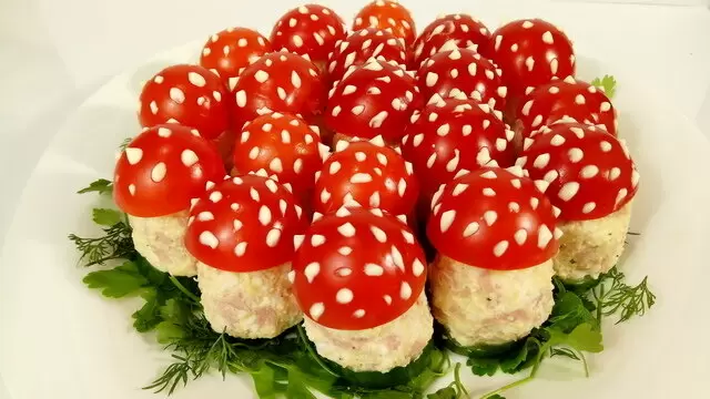 Эта закуска удивляет своей легкостью и оригинальностью. Многие холостяки могут обратить внимание на ее привлекательный внешний вид и вкус, и, возможно, это поможет изменить их статус на более счастливый. «Мухоморчики» отлично впишутся в любое торжество, освежая сервис своей игривостью.