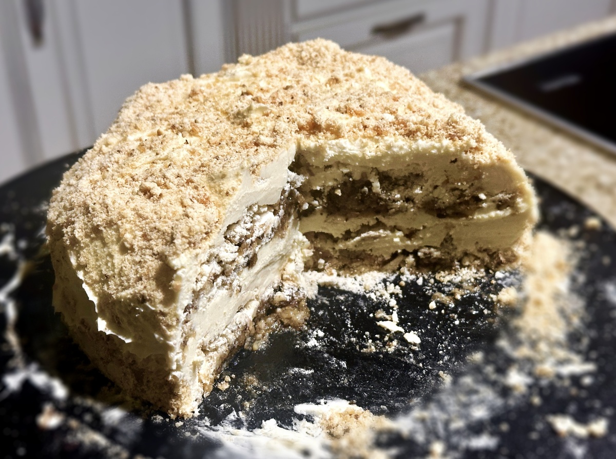 Коржи выпекаются при невысокой температуре (100°C) на протяжении двух часов. Духовку лучше выключить, оставив коржи внутри на ночь для полного высушивания и застывания. Затем отдохнувшие ореховые коржи можно аккуратно смазывать кремом и собирать торт, придавая ему неповторимый вид.