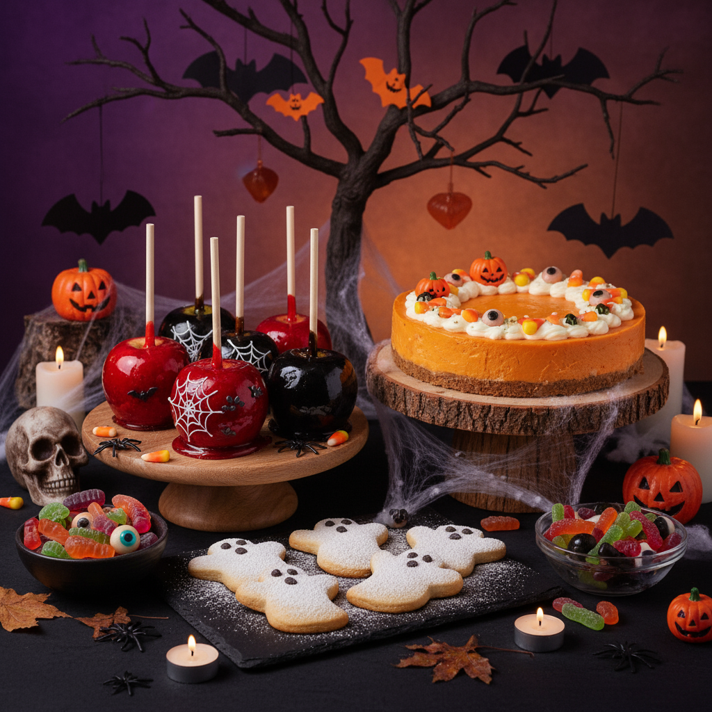 Не забудьте украсить свой стол свечами, тыквами и паутиной, чтобы создать по-настоящему зловещую атмосферу. А какие десерты вы бы добавили к этому списку? Делитесь своими кулинарными находками!