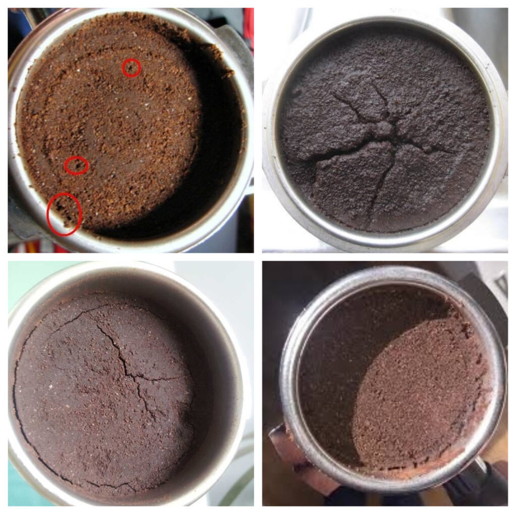 - Неравномерное распределение молотого кофе в корзине.