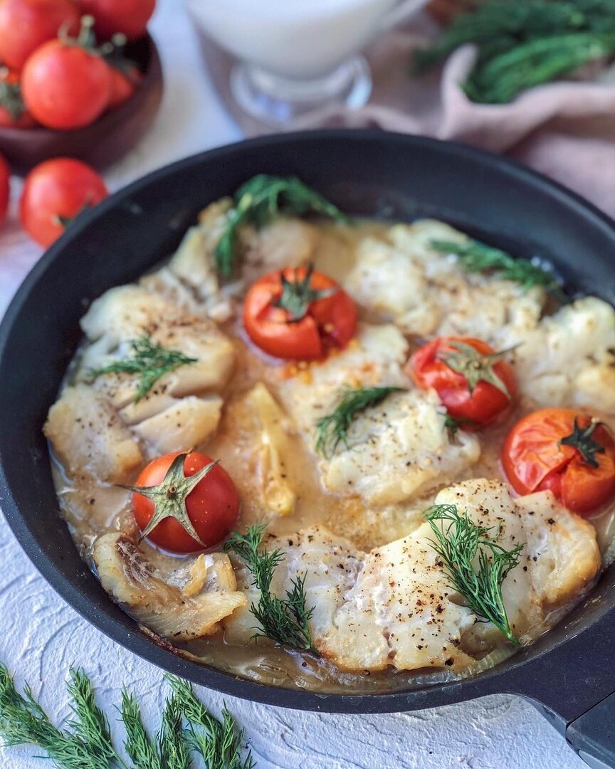 Запекайте блюдо в духовке около 20 минут, или же доведите до готовности на маленьком огне под крышкой. Этот романтичный процесс сделали из трески не только полезный, но и поистине деликатесный ужин.